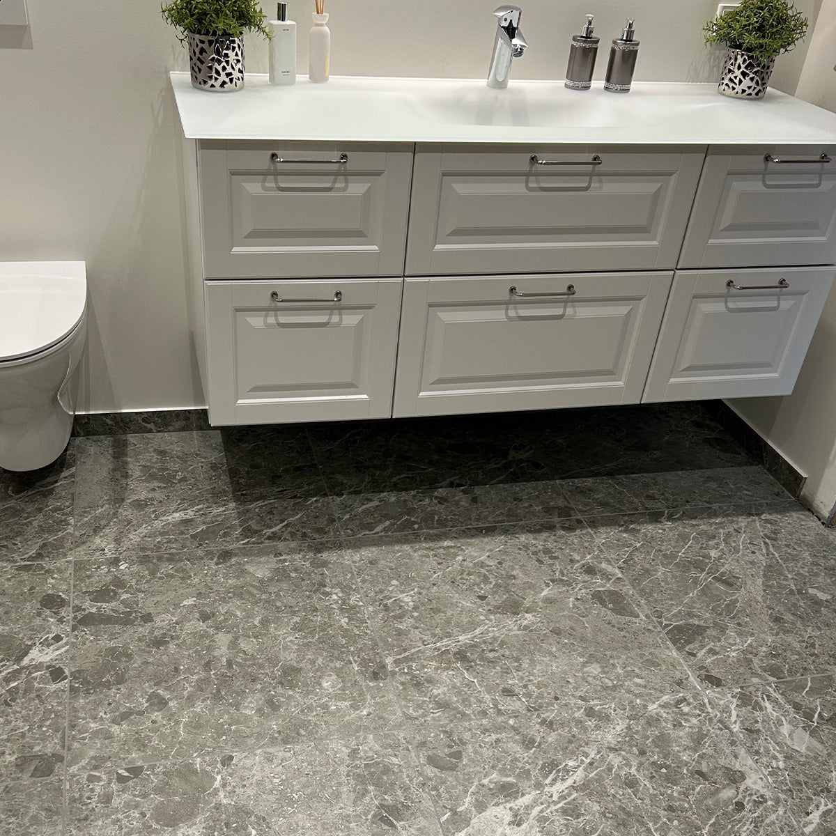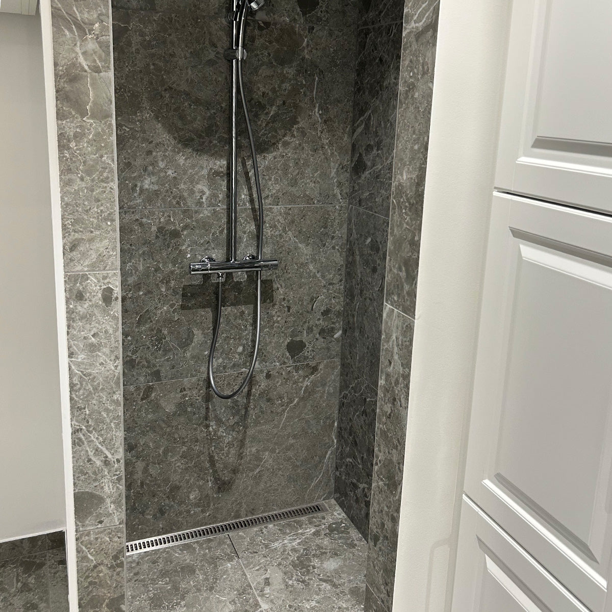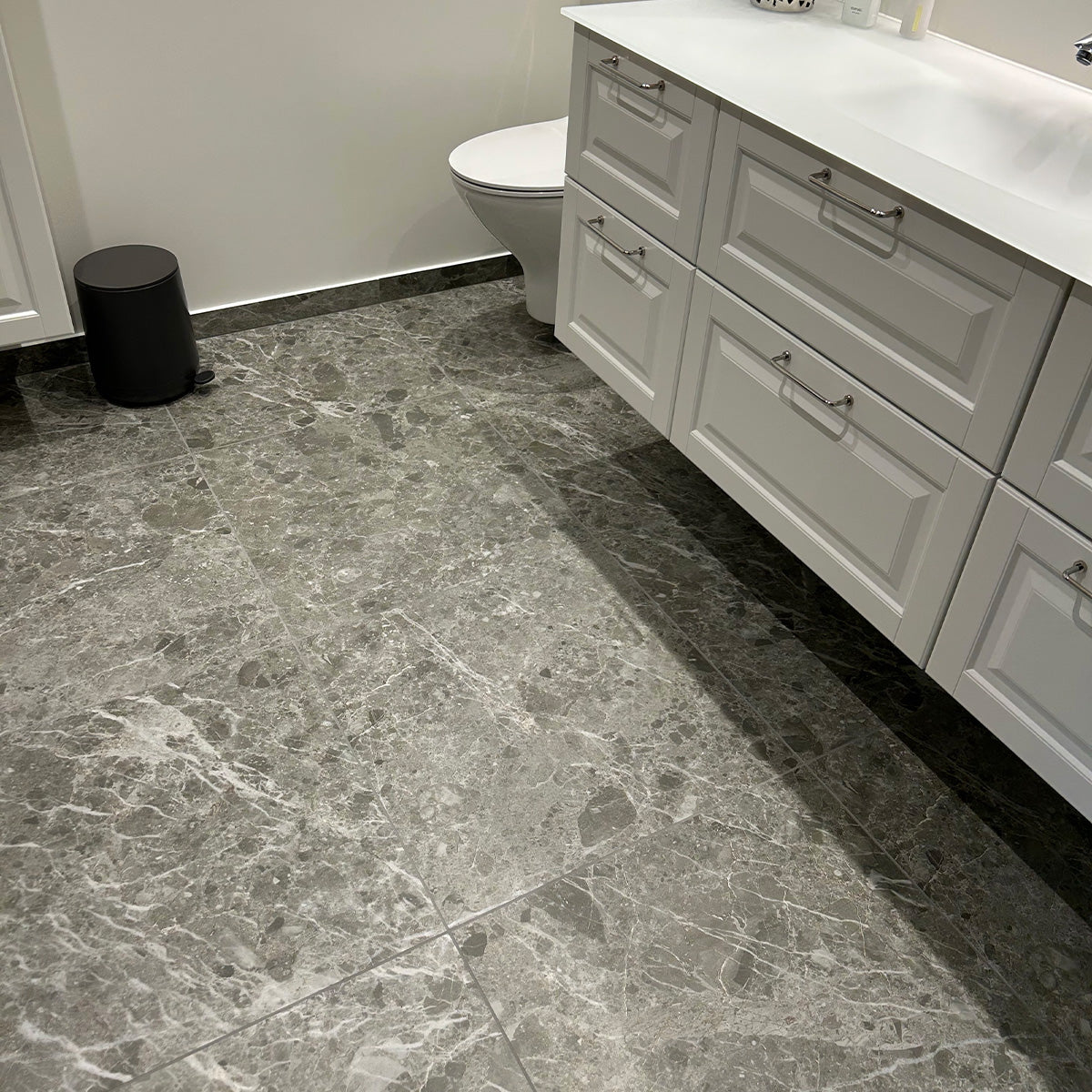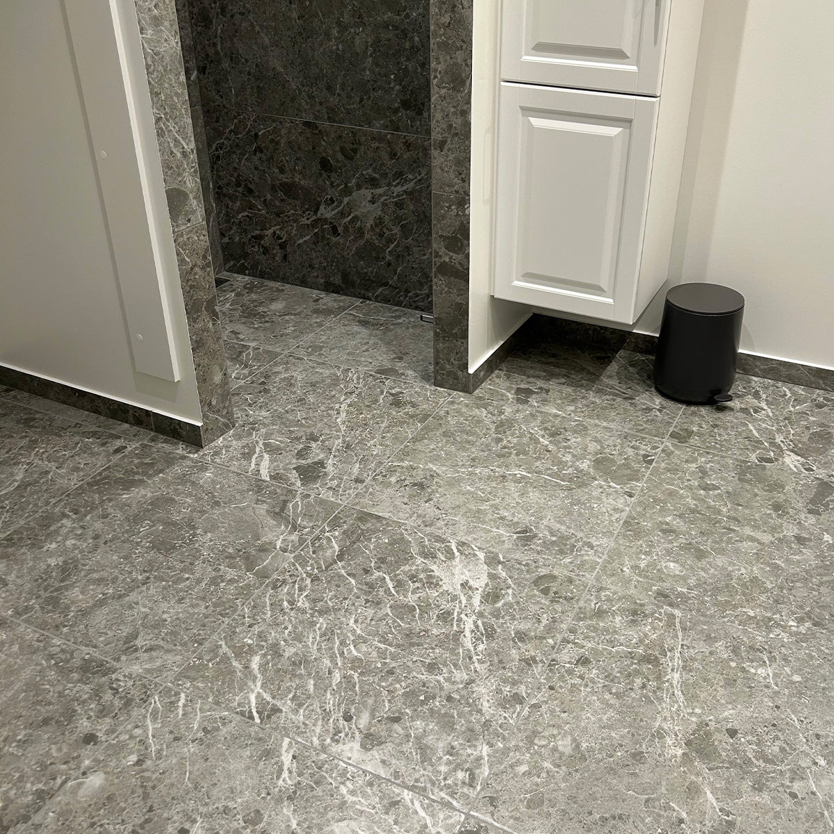 Caprice Grey er det perfekte valg, når du ønsker et mørkt og elegant udtryk med tidløst design. De dybe grå nuancer og diskrete hvide årer giver rummet et eksklusivt marmor-look, der både er flot og funktionelt. Flisen har et naturligt stenpræg, som passer til både vægge og gulve og skaber et harmonisk, sammenhængende resultat.