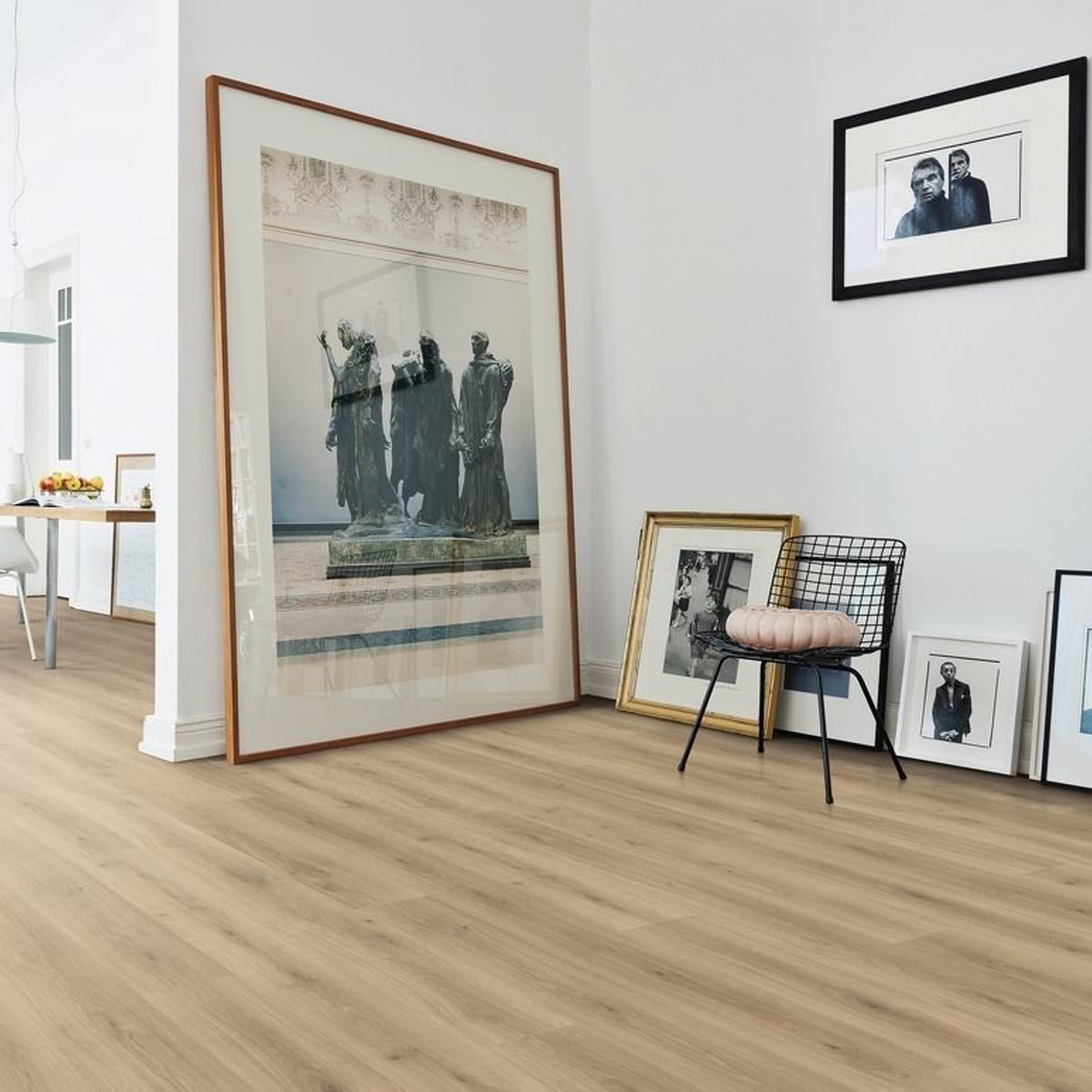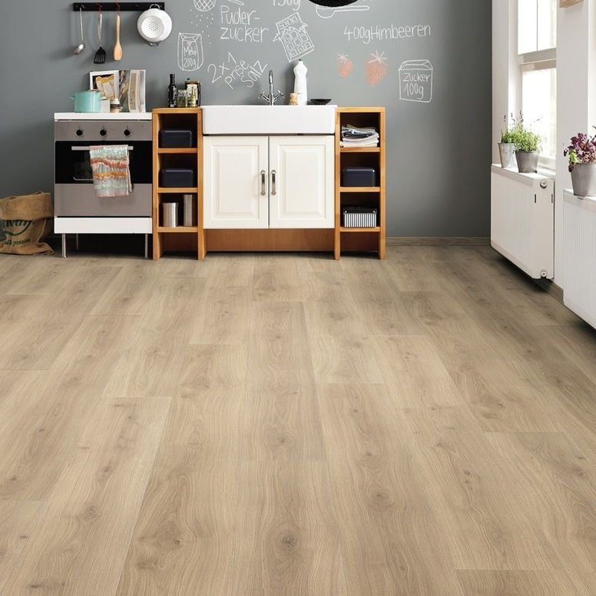 HARO Gran Via 4V i Eg Emilia Puro bringer varme og elegance til ethvert rum med sin smukke træstruktur. Dette laminatgulv kombinerer det naturlige udseende af egetræ med laminatets holdbarhed og praktiske egenskaber. Gran Via-formatet med ekstra brede planker og 4-sidet fasning skaber et luksuriøst og rummeligt udtryk, som løfter både køkkener, stuer og andre opholdsrum til nye højder.
