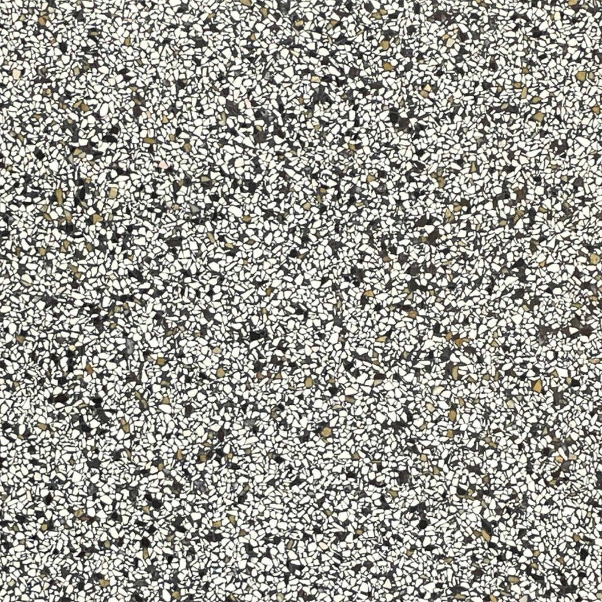 Disse terrazzo fliser består hovedsageligt af natursten, som bindes sammen med cement. Ligesom klassisk terrazzo har fliserne en let åben overfladestruktur, og det anbefales derfor at anvende en beskyttende imprægnering, der lukker både flise og fuge. Rengøring bør ske med milde midler, da sure produkter kan beskadige overfladen.