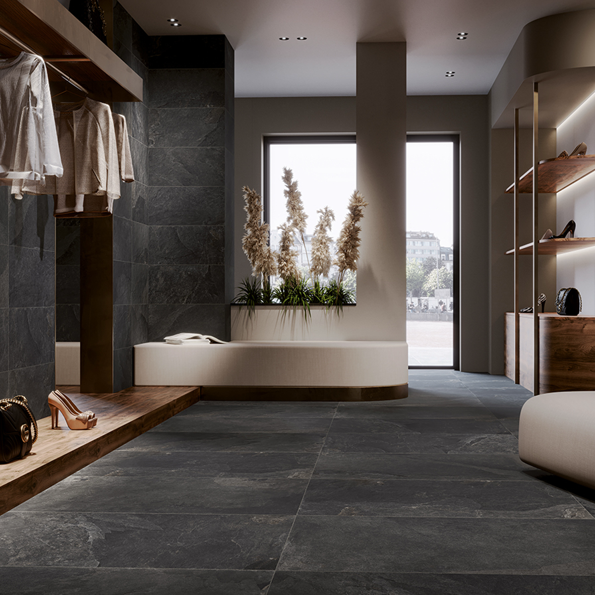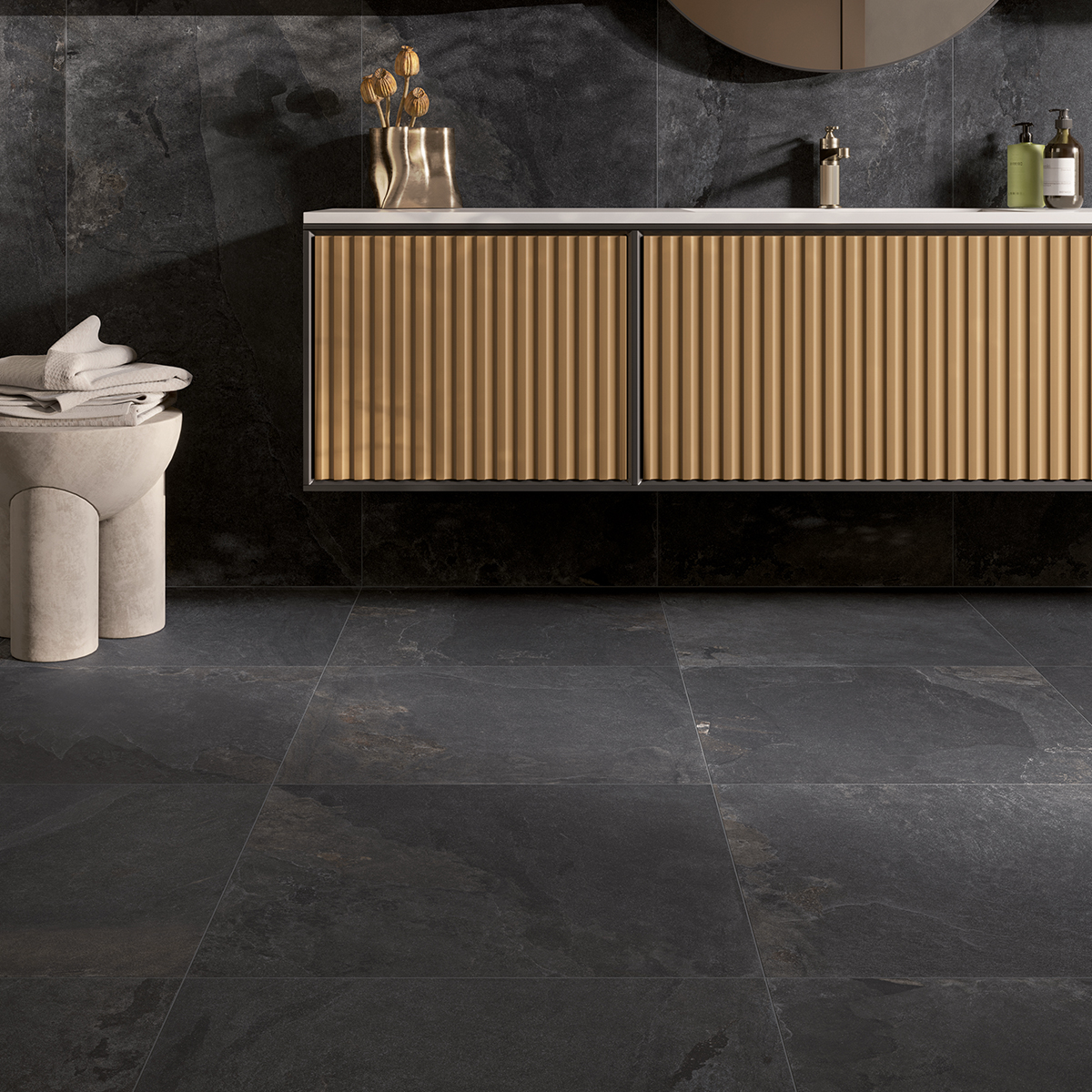 Vil du have skiferens smukke, naturlige udseende, men slippe for besværet med vedligeholdelse? Canyon Black er en keramisk flise, der ligner ægte skifer, men som er skabt til at klare hverdagens slid.